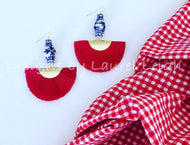 Chinoiserie Ginger Jar Red Fan Tassel Earrings