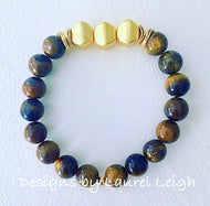 Brown Tiger’s Eye Gemstone and Gold Beaded Bracelet