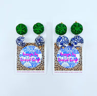 Pink & Green Scalloped Floral Pearl Earrings