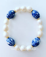 Blue & White Chinoiserie Freshwater Pearl Bracelet