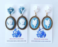Wedgwood Blue Floral Cameo Earrings