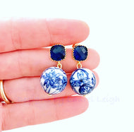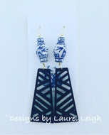 Chinoiserie Chippendale Ginger Jar Statement Earrings - Black or Blue