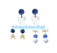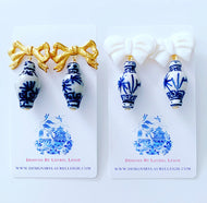 Chinoiserie Ginger Jar Bow Earrings - Blue & White