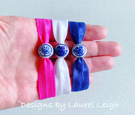 Chinoiserie Elastic Hair Ties- Set of 3 - Assorted Solid Colors