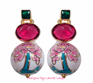 Pink & Green Peony Gemstone Earrings