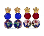 Blue Floral Cloisonné Gemstone Earrings