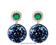 Green Gemstone Chinoiserie Coin Earrings