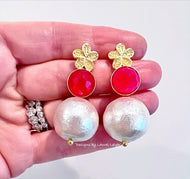 Hot Pink Gemstone Pearl Earrings