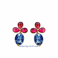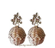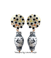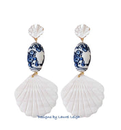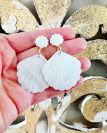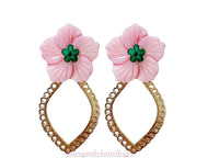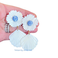 Chinoiserie Floral Pearl Shell Drop Earrings