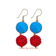 Red Cinnabar & Turquoise Gemstone Drop Earrings