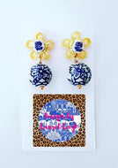 Blue, White & Yellow Petite Fleur Drop Earrings