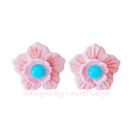 Turquoise Blue & White Petite Fleur Pearl Studs