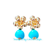 Gold Floral Turquoise Nugget Earrings