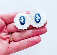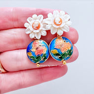 Cloisonné Pearl Daisy Cameo Earrings