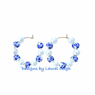 Blue & White Chinoiserie Floral Beaded Hoops