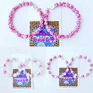 Pink & White Chinoiserie Floral Beaded Bracelet