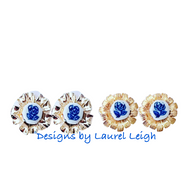Blue Willow Pearl Rose Cameo Earrings