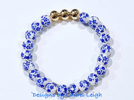 Blue & White Chinoiserie Floral Beaded Bracelet
