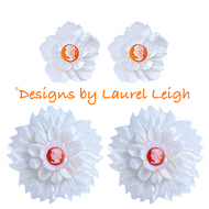 Orange & White Floral Cameo Pearl Studs - 2 Sizes