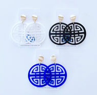 Chinoiserie Longevity Symbol Earrings - White/Black/Royal