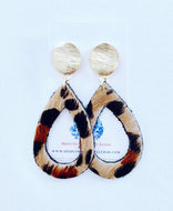 Gold and Leather Leopard Print Cutout Teardrop Earrings - Posts