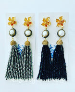 Dressy Floral and Pearl Beaded Tassel Statement Earrings - Gold/Black Or Gold/Silver