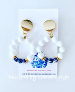 Turquoise and Gold Cloisonne Beaded Floral Post Hoops