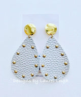 Silver and Gold Two-tone Faux Leather Studded Statement Earrings