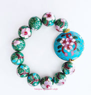 Peacock Pearl & Chinoiserie Peony Bracelet