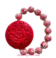 Red Chinoiserie Cinnabar Focal Bead Bracelet